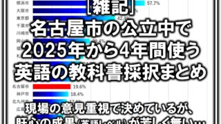中学受験/高校受験[雑記]名古屋市の公立中で2025年から4年間使う英語の教科書が決まりました 名古屋市の公立中で2025年から4年間使う英語の教科書と、その選定方法、その検討時の意見として出た、「名古屋市の英語教育のレベル」について調べました 2024.09.18中学受験/高校受験公立中高一貫校中高一貫校