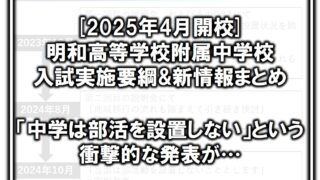 中学受験/高校受験[25年4月入学]明和中1期生の入試・学校生活に関する新情報まとめ 昨日、X(旧Twitter)では先出ししましたが、注目度の高い25年4月開校の明和高等学校附属中について、 最終的な入試実施要綱の公表 受験生・保護者からの質問に対する回答の追加 があったので、新情報を中心にまとめたいと思... 2024.10.24中学受験/高校受験公立中高一貫校中高一貫校