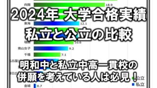 中学受験/高校受験[2024年データ]愛知県公立高校と中高一貫私立校の大学合格実績比較 2024年における愛知県公立高校と中高一貫私立校の大学合格実績を比較しました。 基本的な傾向は去年と変わらず、やはり旭丘高校、東海高校が強いです。 2024.07.11中学受験/高校受験公立中高一貫校中高一貫校