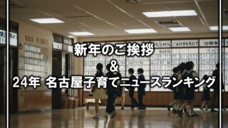 その他名古屋のお話新年のご挨拶&2024年名古屋子育てニュースランキング 2025年新年のご挨拶と、個人的に気になった2024年の名古屋に関する子育てニュースをまとめています。 2025.01.08その他名古屋のお話子育て中学受験/高校受験