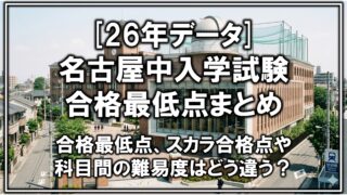 中学受験/高校受験[26年データ]名古屋中は何点取れれば合格できるのか?(名古屋中の合格最低点まとめ) 名古屋中の入学試験について、合格最低点・受験者平均点・合格者平均点の推移をまとめました。 25年から26年にかけてどう変化したか、というのも追記してあります。 2026.01.28中学受験/高校受験中高一貫校