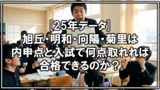 中学受験/高校受験[25年データ]旭丘高校・明和高校・向陽高校・菊里高校は何点取れれば合格できるのか? 25年入試における、旭丘高校・明和高校・向陽高校・菊里高校の合格最低点のイメージを作ってみました。 2026.02.04中学受験/高校受験公立中高一貫校中高一貫校