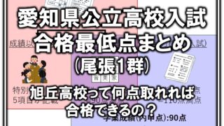 中学受験/高校受験愛知県公立高校合格最低点まとめ Part1(旭丘高校って何点取れば合格できる?) 2023年の全県模試データから、愛知県の公立高校入試における合格最低点をまとめました。 今回は、旭丘高校や菊里高校のある「尾張1群」をピックアップしています。 2024.03.01中学受験/高校受験