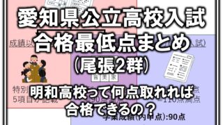 中学受験/高校受験愛知県公立高校合格最低点まとめ Part2(明和高校・向陽高校って何点取れば合格できる?) 2023年の全県模試データから、愛知県の公立高校入試における合格最低点をまとめました。 今回は、明和高校や向陽高校のある「尾張2群」をピックアップしています。 2024.03.04中学受験/高校受験