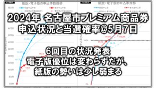 プレミアム商品券[2024年 プレミアム商品券]5月7日時点の倍率・当選確率・申込数まとめ 2024年のプレミアム商品券における2024年5月7日時点の申込状況をまとめました。 紙版は昨年よりも当選確率が低くなることが確定。電子版はどうか…? 2024.05.08プレミアム商品券プレミアム商品券申込状況速報