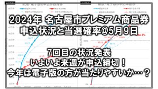 プレミアム商品券[2024年 プレミアム商品券]5月9日時点の倍率・当選確率・申込数まとめ 2024年のプレミアム商品券における2024年5月9日時点の申込状況をまとめました。 このままの傾向が続くと、金シャチマネーの方が当たりやすくなるかも。 2024.05.10プレミアム商品券プレミアム商品券申込状況速報