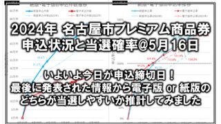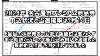 プレミアム商品券[2024年 プレミアム商品券]5月14日時点の倍率・当選確率・申込数まとめ 2024年のプレミアム商品券における2024年5月14日時点の申込状況をまとめました。 最終的な倍率予測も出しています。 2024.05.15プレミアム商品券プレミアム商品券申込状況速報