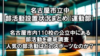 学区紹介名古屋市立中学校の部活動まとめ(運動部) 名古屋市内の公立中110校に設置されている部活動を調査し、人気の部活動は何かをランキング化しました。 各競技が部活動として採用されている学校リストも付記してあります。 2024.12.18学区紹介