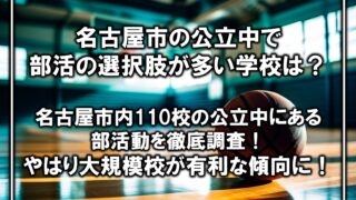 学区紹介名古屋市の公立中で部活の選択肢が多いのはどこか?(24年データ) 名古屋市内の公立中110校に設置されている部活動を調査し、部活の選択肢が多い学校をランキング化しました。 各校の部活リストも併せて掲載しています。 2024.12.24学区紹介