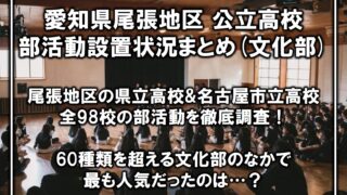中学受験/高校受験愛知県立高校&名古屋市立高校の部活動まとめ(文化部) 以前、名古屋市内の公立中各校で設置されている部活動についてまとめましたが、今回は公立高校の部活編を作ってみました。 Part2の今回は文化部編です。 運動部編はこちらからどうぞ。 今回集計対象としたのは、 愛知県立高... 2025.02.12中学受験/高校受験