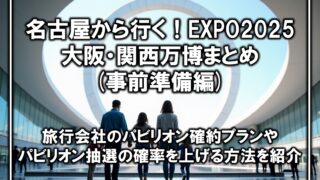 名古屋近郊の遊び場名古屋から行く!EXPO2025 大阪・関西万博まとめ(事前準備編) 大阪万博について、チケットやパビリオンの事前予約など、現地に行く前に必要な準備についてまとめました。 2025.05.21名古屋近郊の遊び場