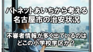 学区紹介パトネットあいち(きずなネット)の不審者情報から見た治安分析 Part2 パトネットあいちから収集した1年分のデータを使って、名古屋市の各小学校学区の治安状況を可視化しました 2025.05.15学区紹介