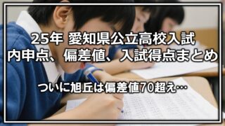 中学受験/高校受験[2025年データ]愛知県の公立高校受験の内申点や入試得点、偏差値まとめ 今回は定期データの更新記事で、 「実際に各高校に行く人はどれぐらいの内申点を取っているのか?」 「各高校の偏差値はどれぐらいなのか?」 というところの最新データをご紹介します。 なお、分析対象の学校に関しては、愛知全県模試の合格... 2025.10.20中学受験/高校受験