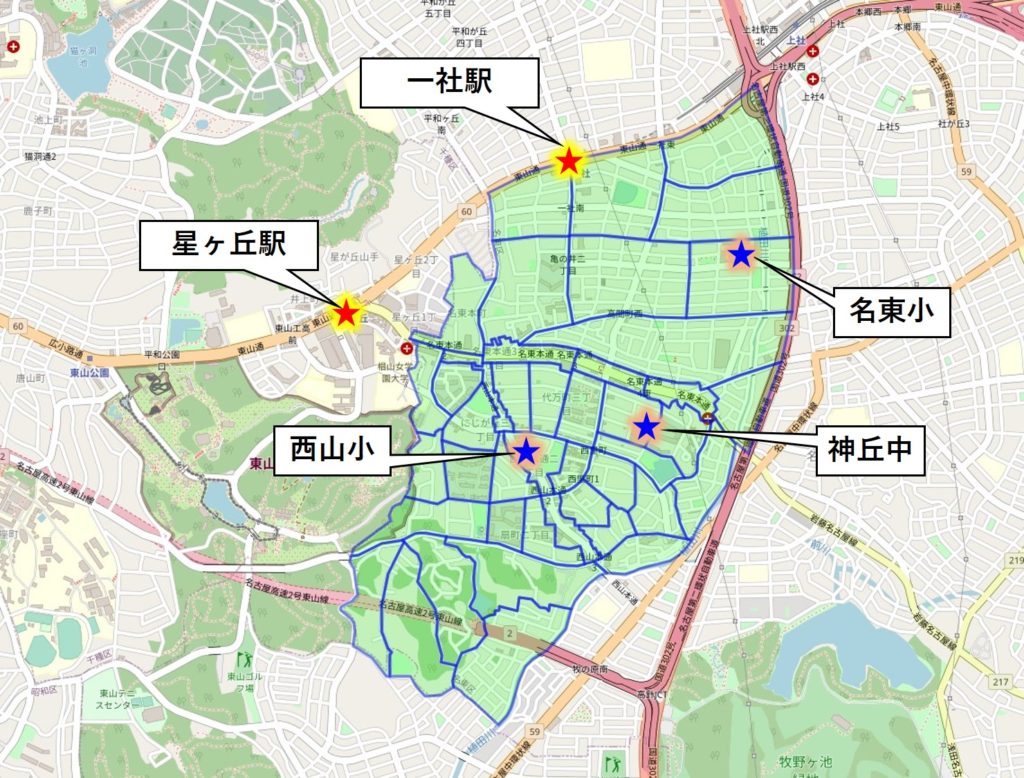 | 一社二丁目 | 名東小 | |