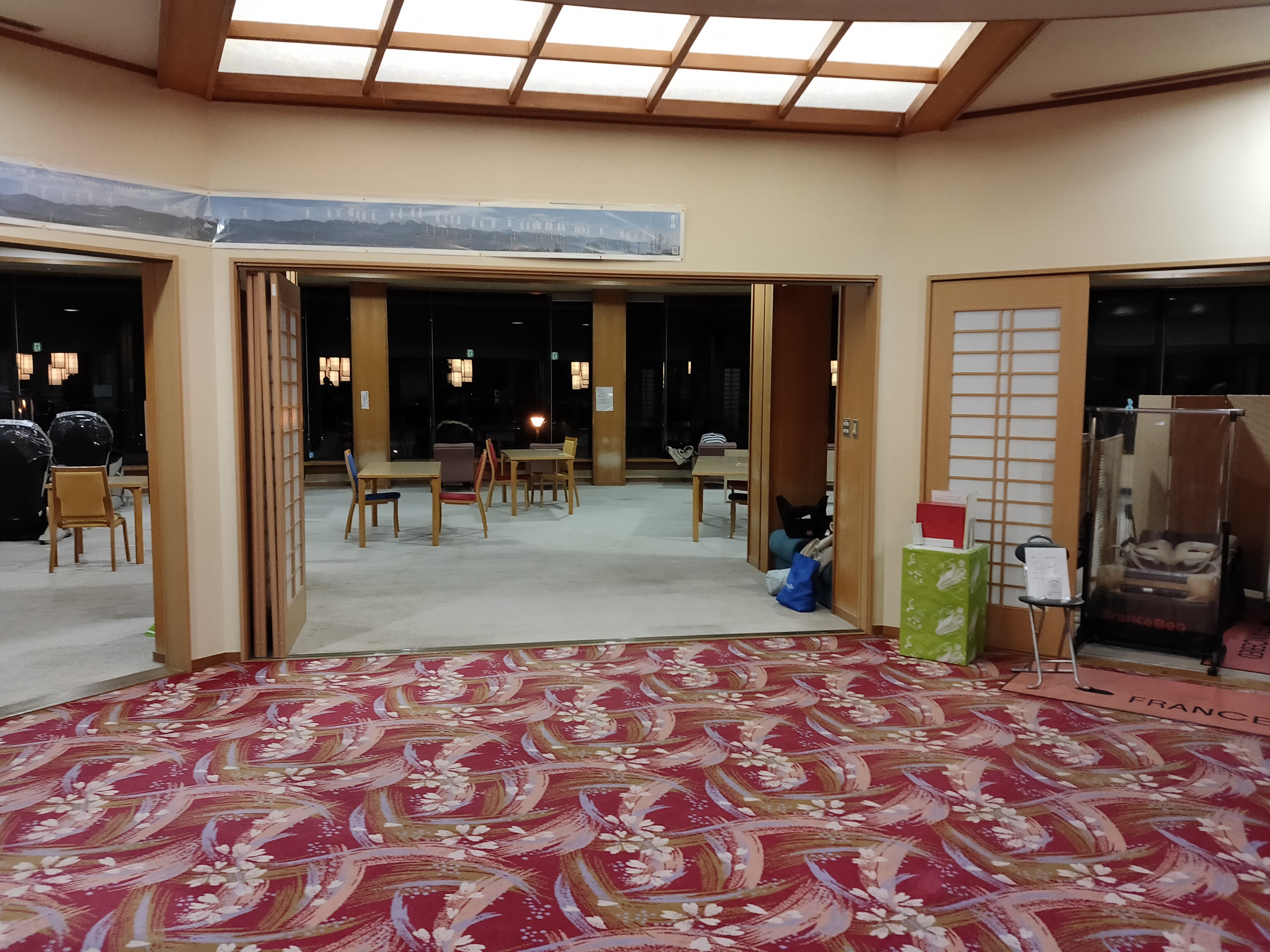 本来であれば、夕食はこの「みはらしの湯」で食べられるのですが、現在は特別な衛生対応が必要ということもあり、食堂は休業中のようです。