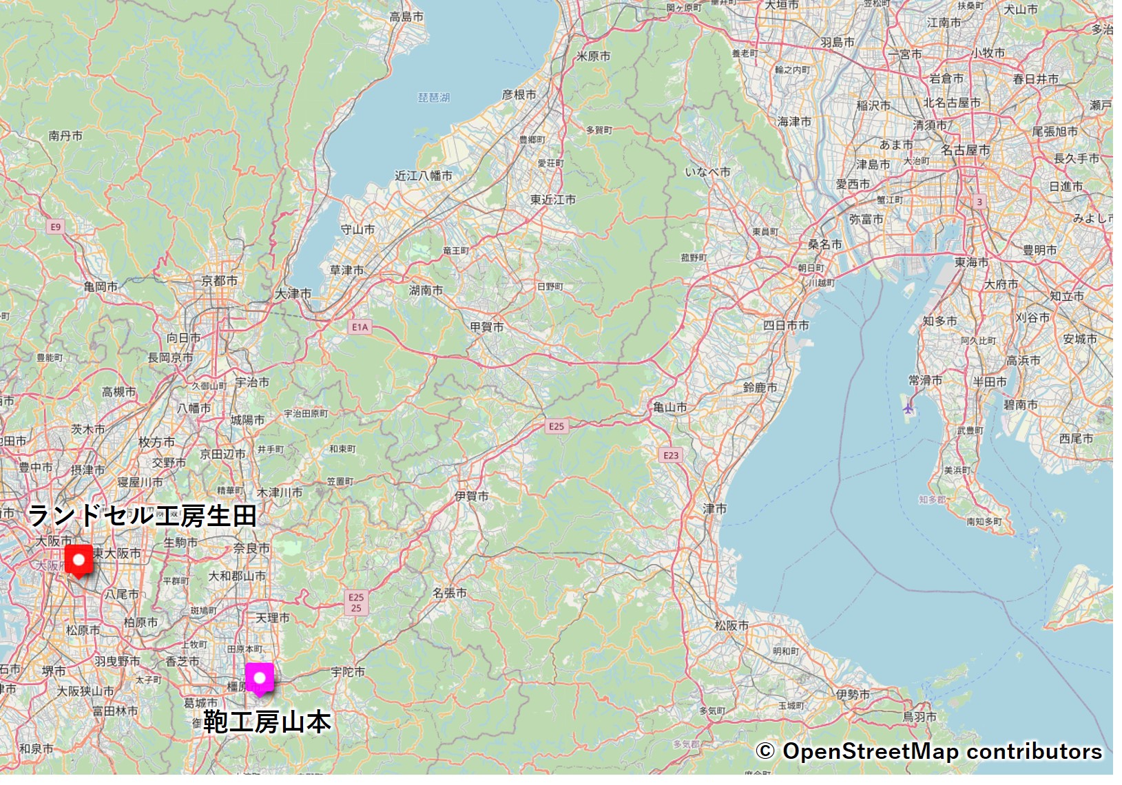 鞄工房山本までは概ね2-2.5時間あれば到着しますし、鞄工房山本からランドセル工房生田までも、高速道路を使えば1時間程度で到着出来ます。