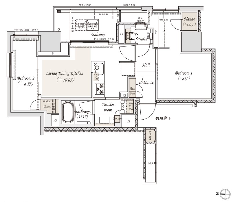 Eタイプはやはり間取りが厳しく、10畳のリビングとその4.5畳のベッドルームの使い勝手が悪いです。