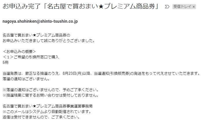 「当選者にのみ引換券が送られ、落選通知は来ない」