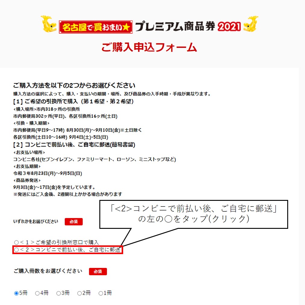 まずは、応募フォームで購入方法を選択します。