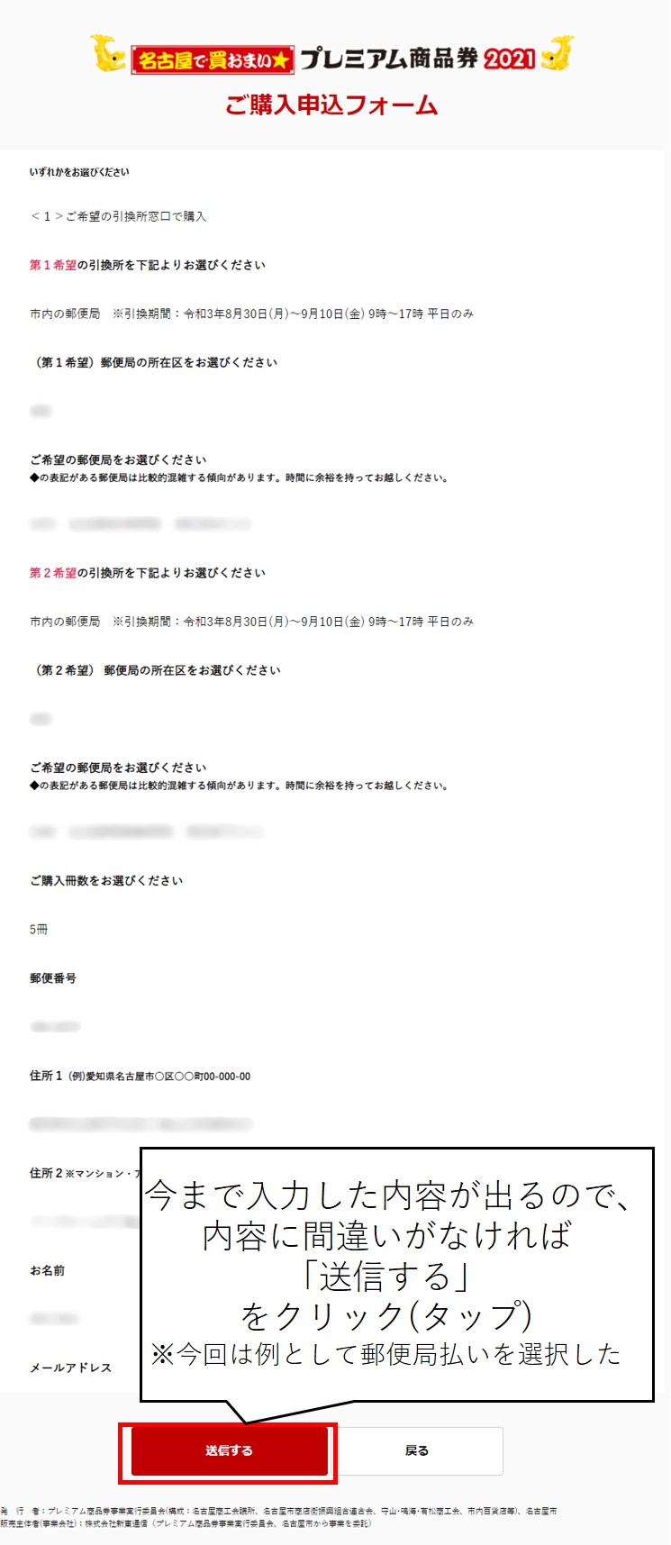 - 入力内容の確認を行って送信