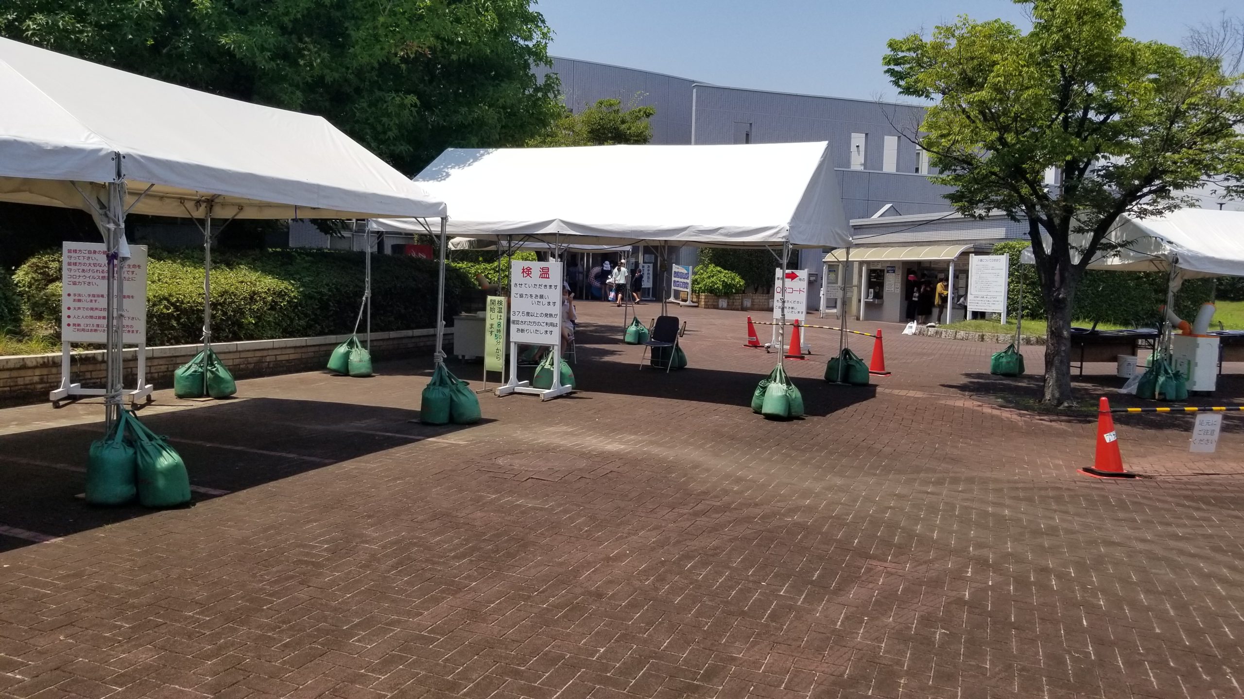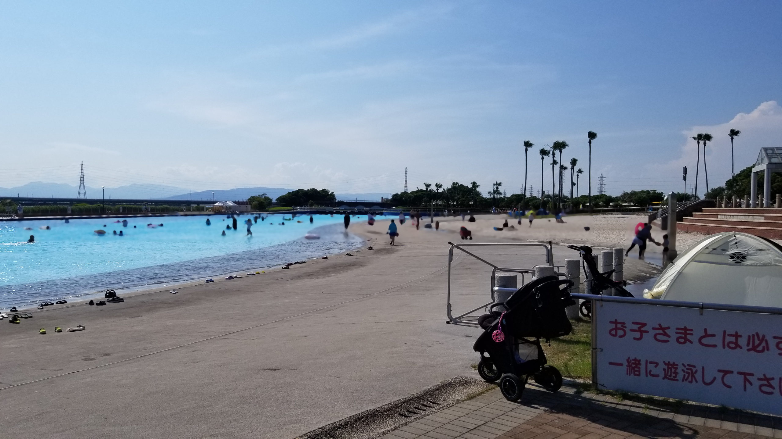とは言え、入場者数が制限されている関係から、不便ではありますが造波プールの横などの芝生+日除けが用意されたエリアは空いていましたし、場所を確保できない、といった事はなさそうです。