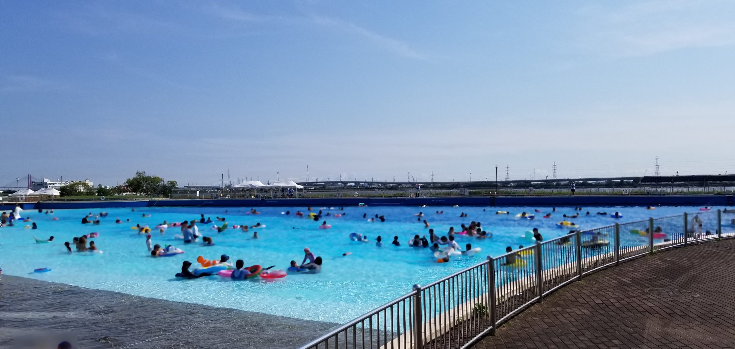 上記は15時前後の造波プールの様子で、12-14時頃と比べると若干人が減っている状態ではあるものの、かなり余裕があります。