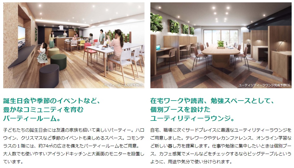 なお、1期に分譲された部分の共用施設にはキッズルームとパーティールームがありますが、現在のところ相互利用を行う予定はないそうです。