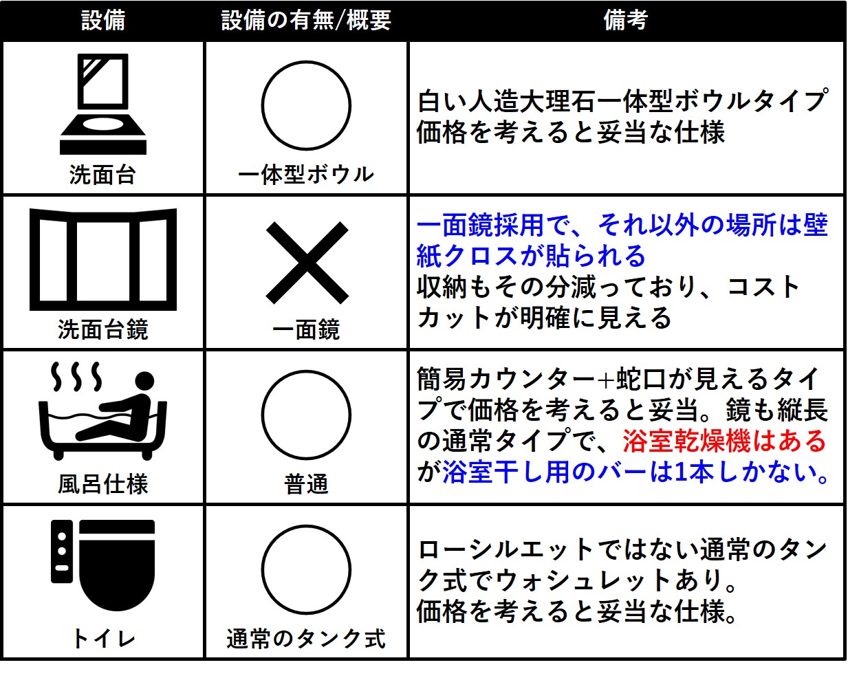 それ以外は△も付いていますが実用的には大きな問題になる箇所は少ないのではないでしょうか。