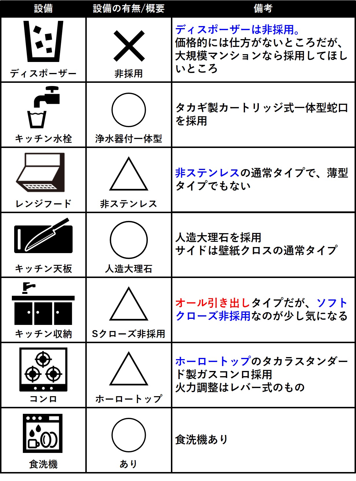 なお、◯、△、✕の表記はある程度価格帯も考慮に入れて付けています。
