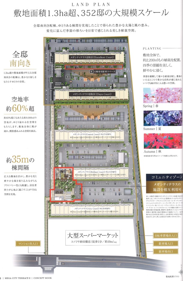 既に553戸の最初の街区(A棟、B棟、C棟)が分譲済で、それに続く352戸のII街区(D棟・E棟)部分が現在分譲されています。