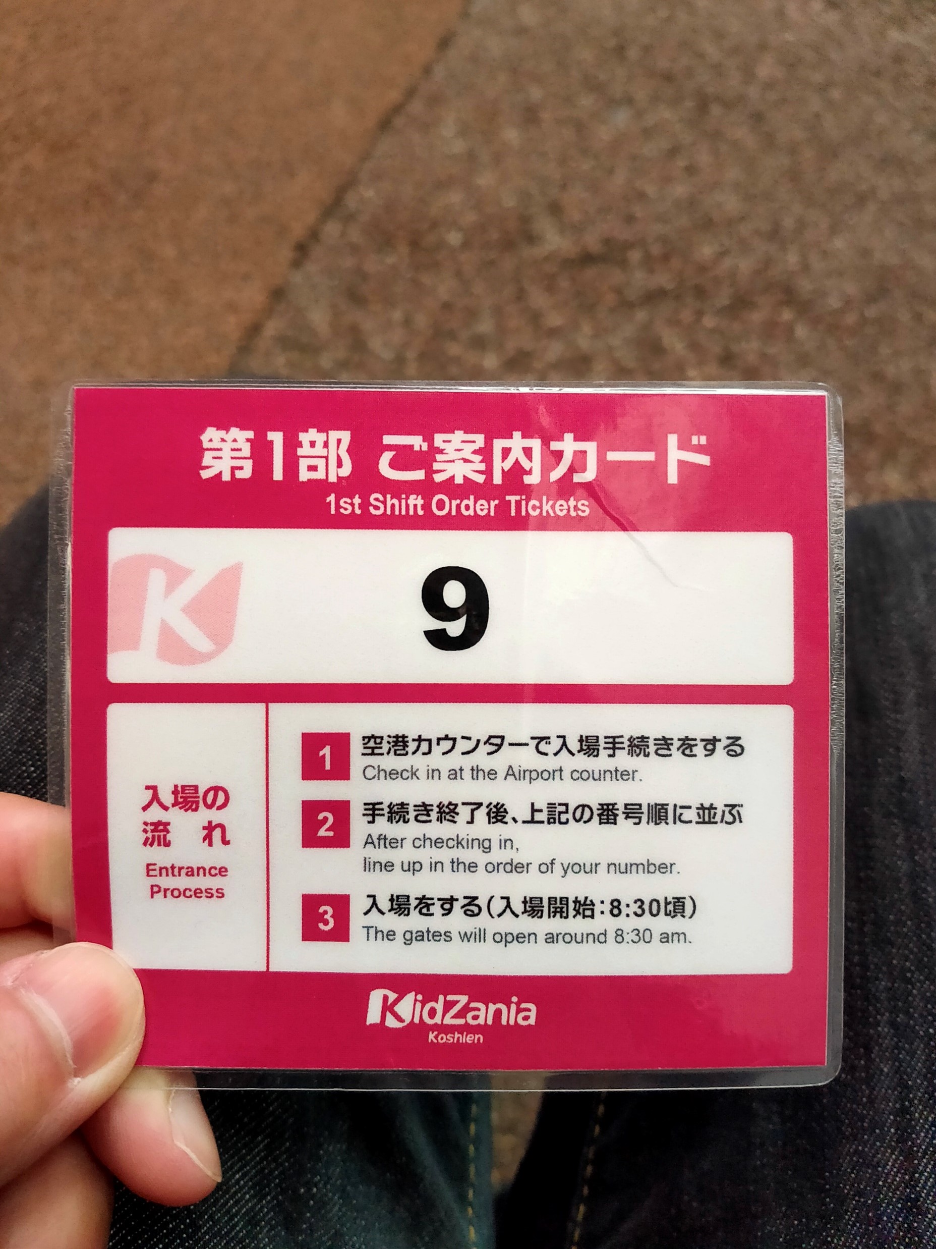 7:00になるとキッザニア甲子園のスタッフの方が整理券を配るので、トイレ等はそのタイミング以外に行ったほうが良いです。