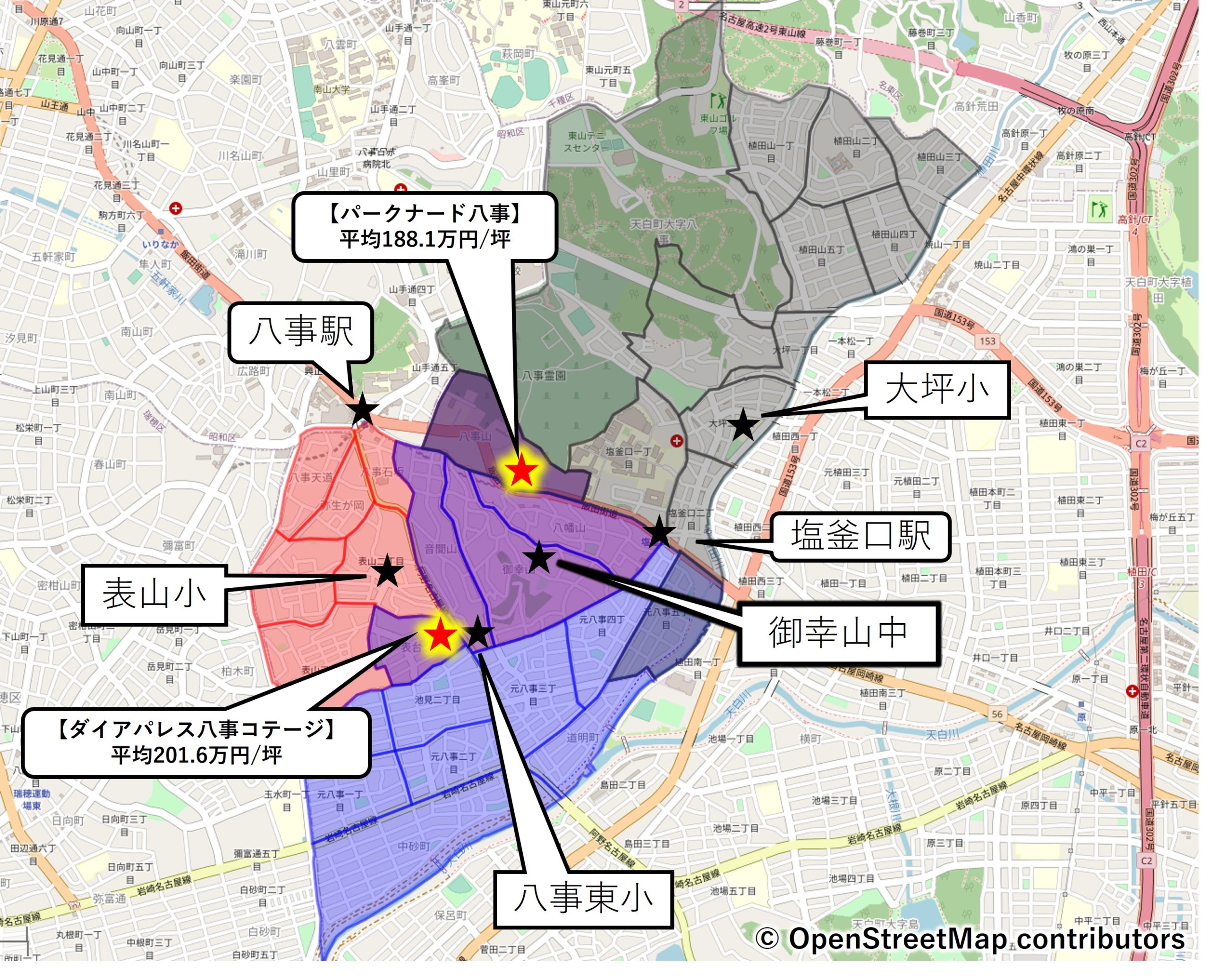 人気とされるのは八事駅から塩釜口駅の南西部のエリア