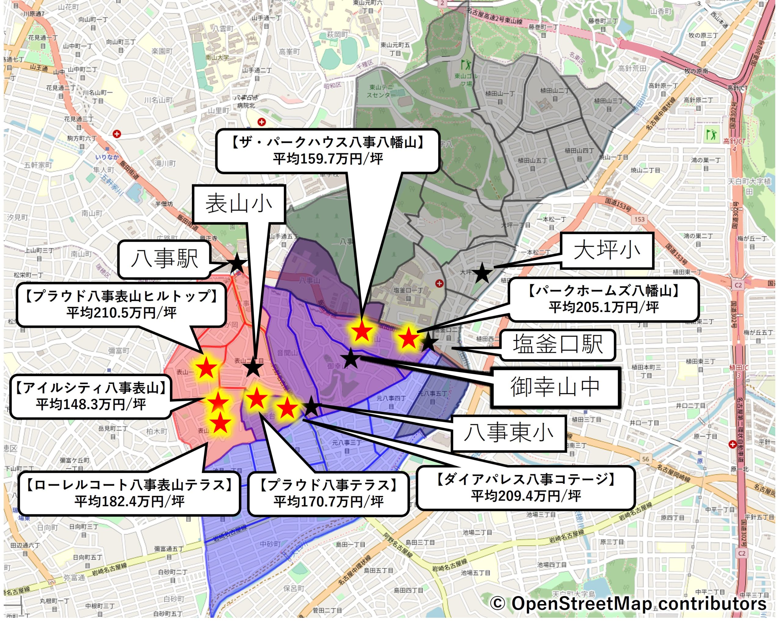 マンションは人気エリアのが中心で、学区は表山と八事東がメインです。