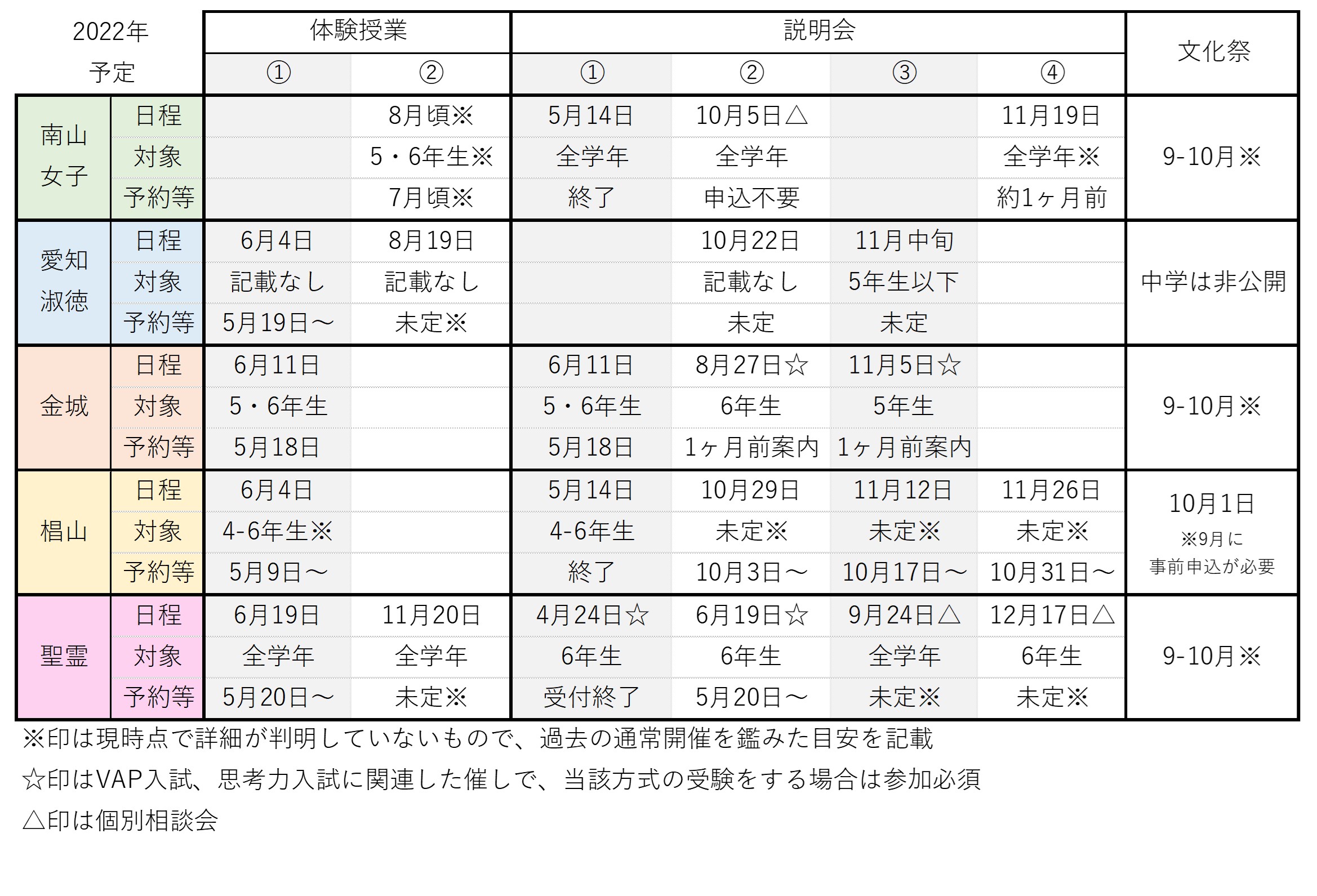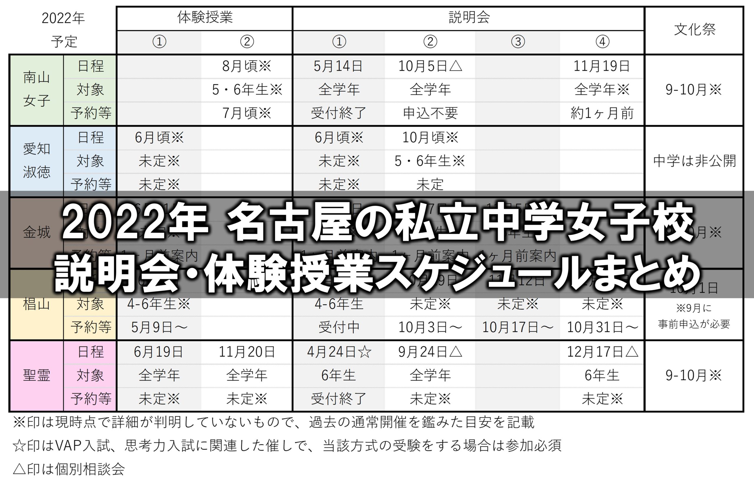 2022年における名古屋の私立中説明会・体験授業・文化祭の予定 女子校編