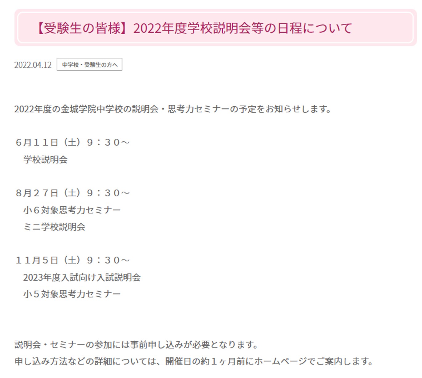 2022年における名古屋の私立中説明会・体験授業・文化祭の予定をご紹介します。