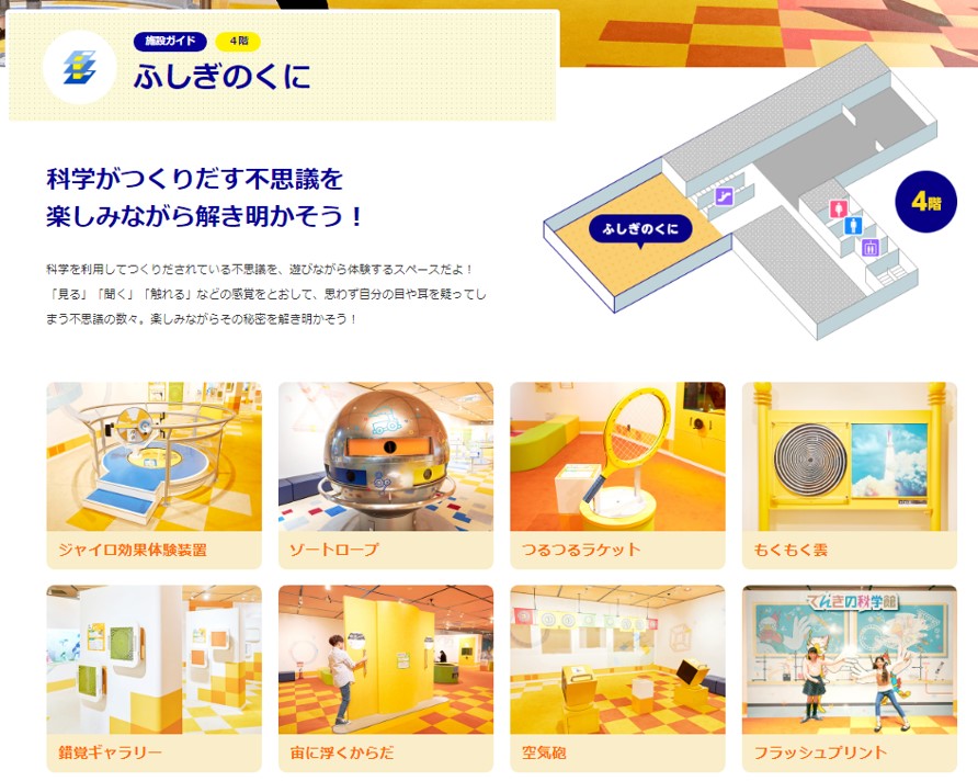 ふしぎのくに はこれまでと違って電気とはあまり関係のない科学を扱った展示が多く、実際に体感するものが多いです。