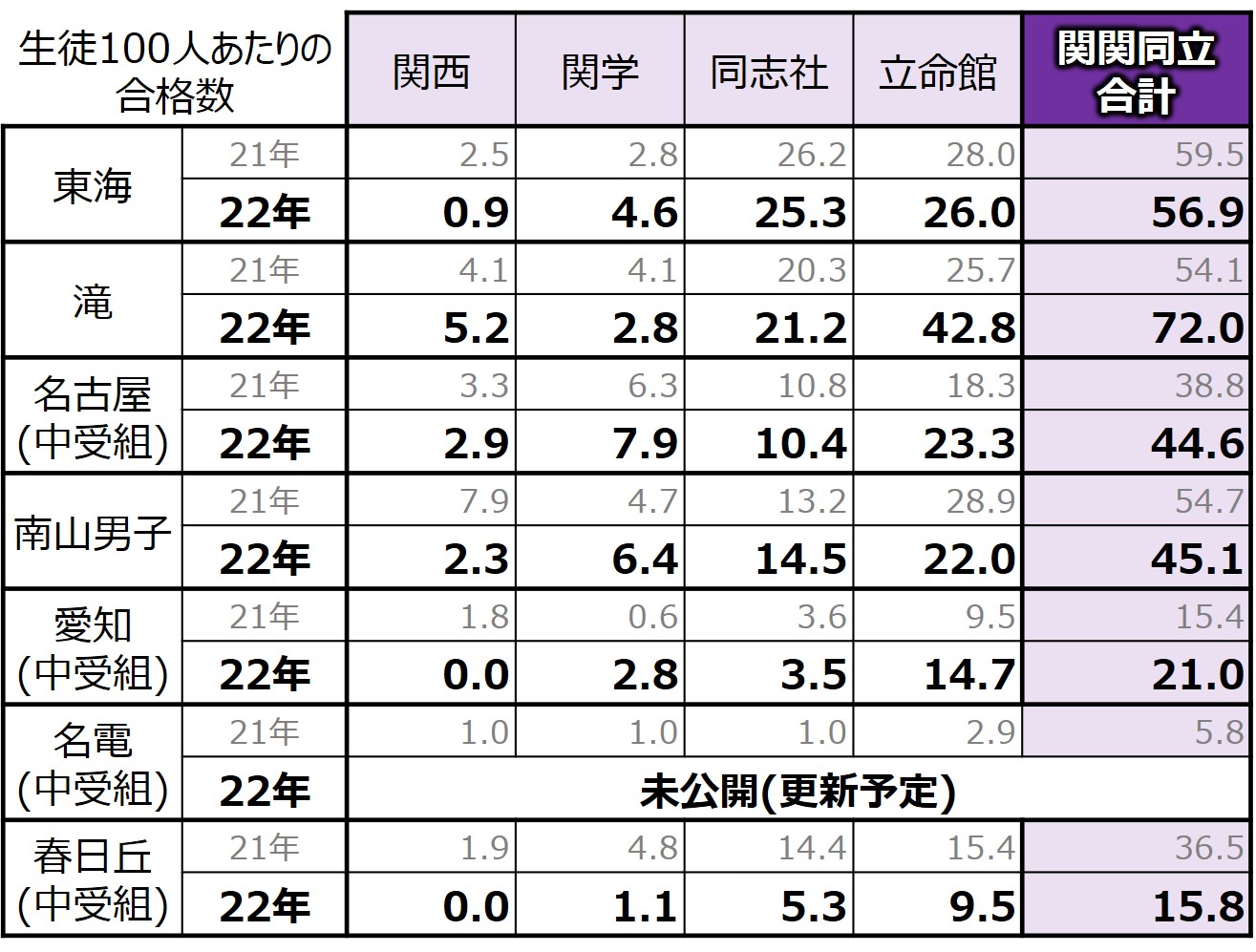- 今回から生徒100人あたりの合格数のみをまとめた