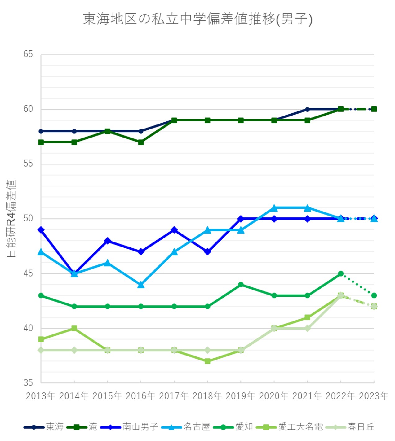 - 東海中:偏差値60