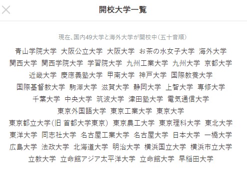 ビズリーチ・キャンパスは以下の大学に通っている人しか利用できません。