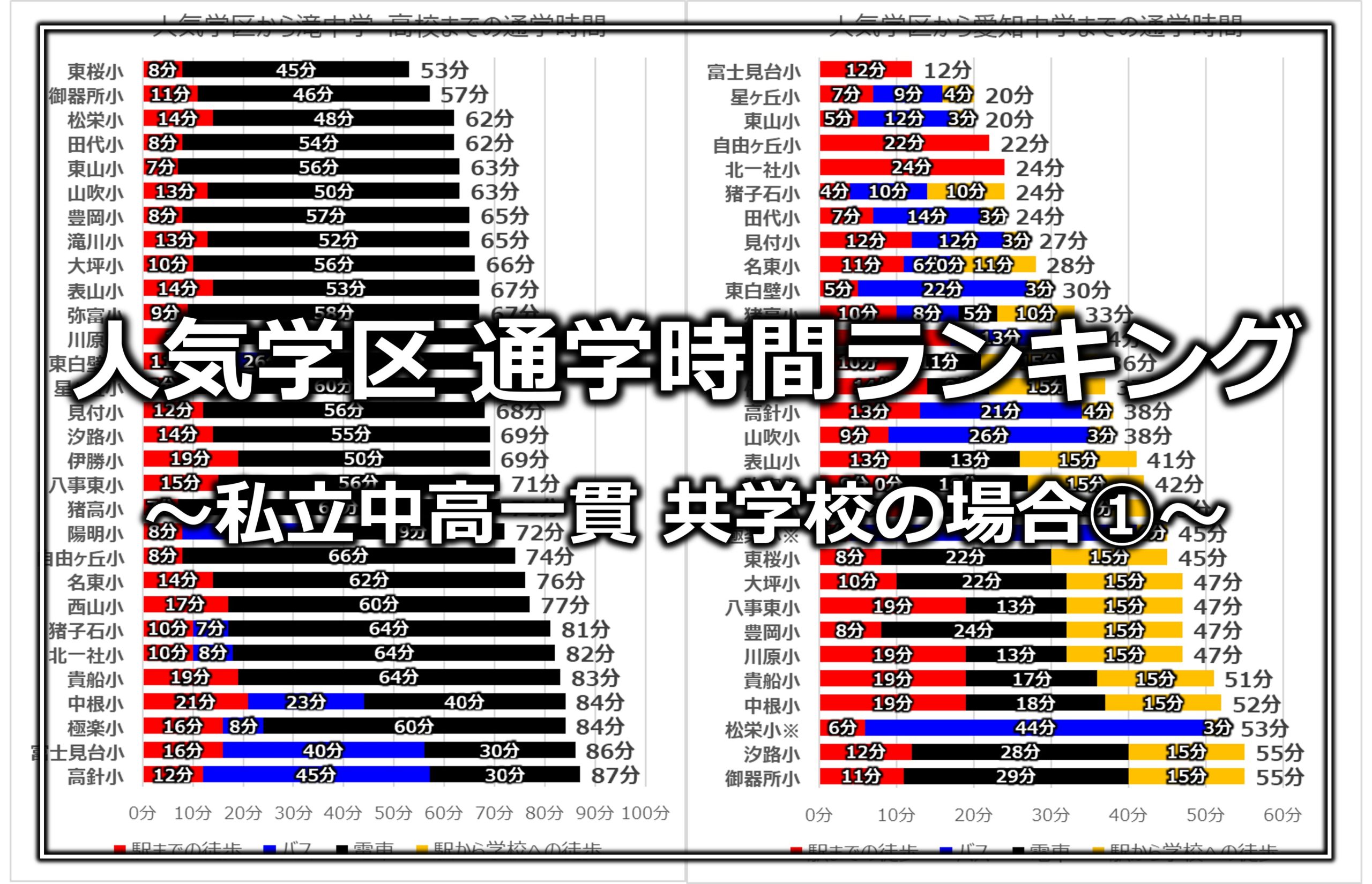 「名古屋の人気学区における通学時間ランキング(私立共学校編) Part1」