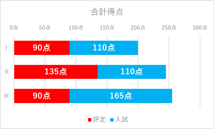 当然、入試重視のⅢのパターンの合計得点が大きくなります。