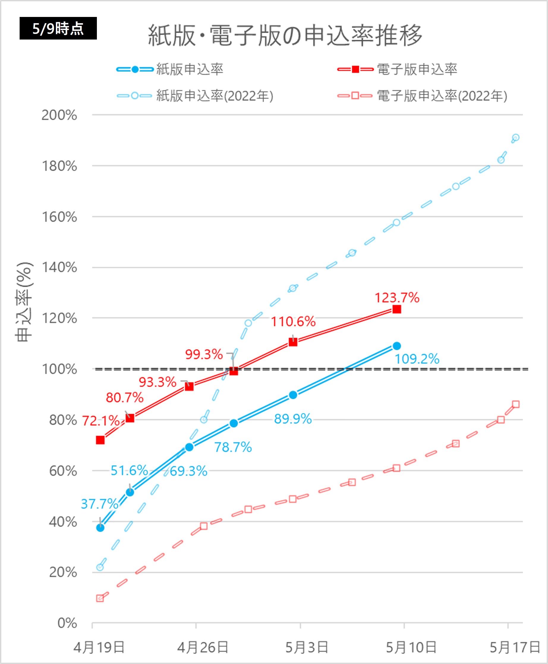 つまり、申込率で言えば紙版と電子版の差は縮まっています。