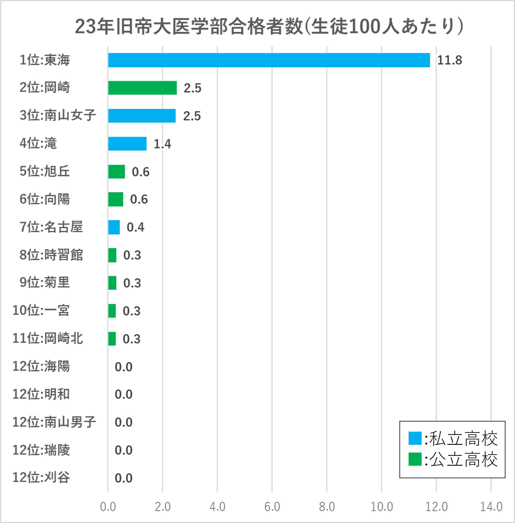 愛知県内高校の旧帝大医学部進学実績比較