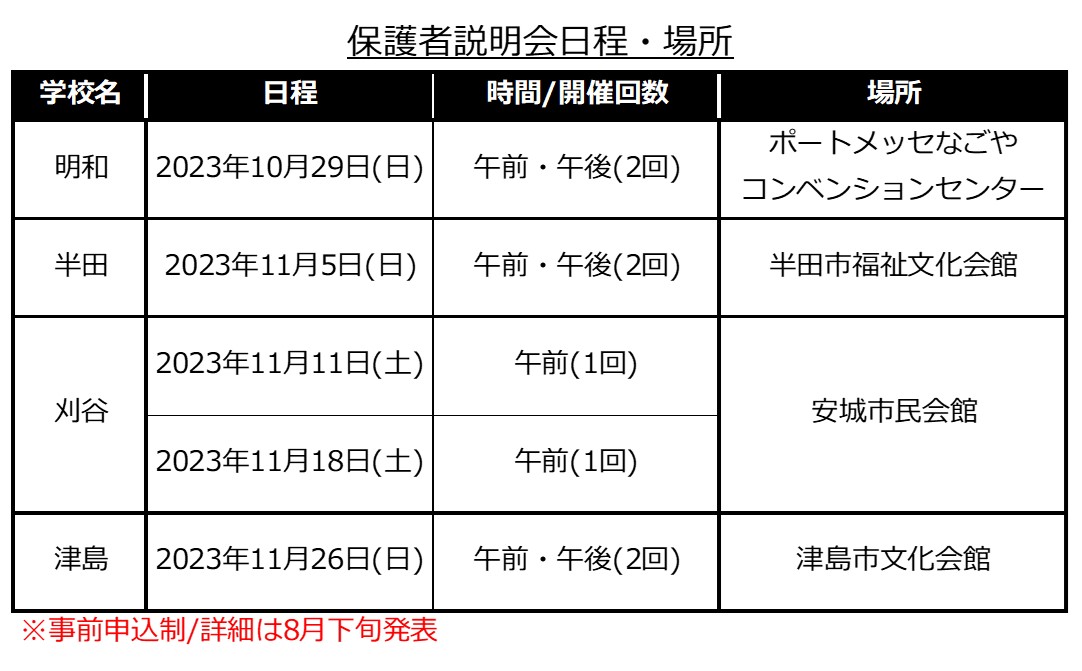 10月末~11月にかけて開催される保護者説明会の日程も今回発表されており、以下の通りになっています。