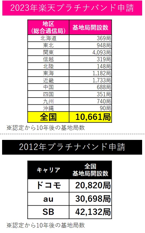 - 2012年のプラチナバンド申請の際に各社が約束した基地局数