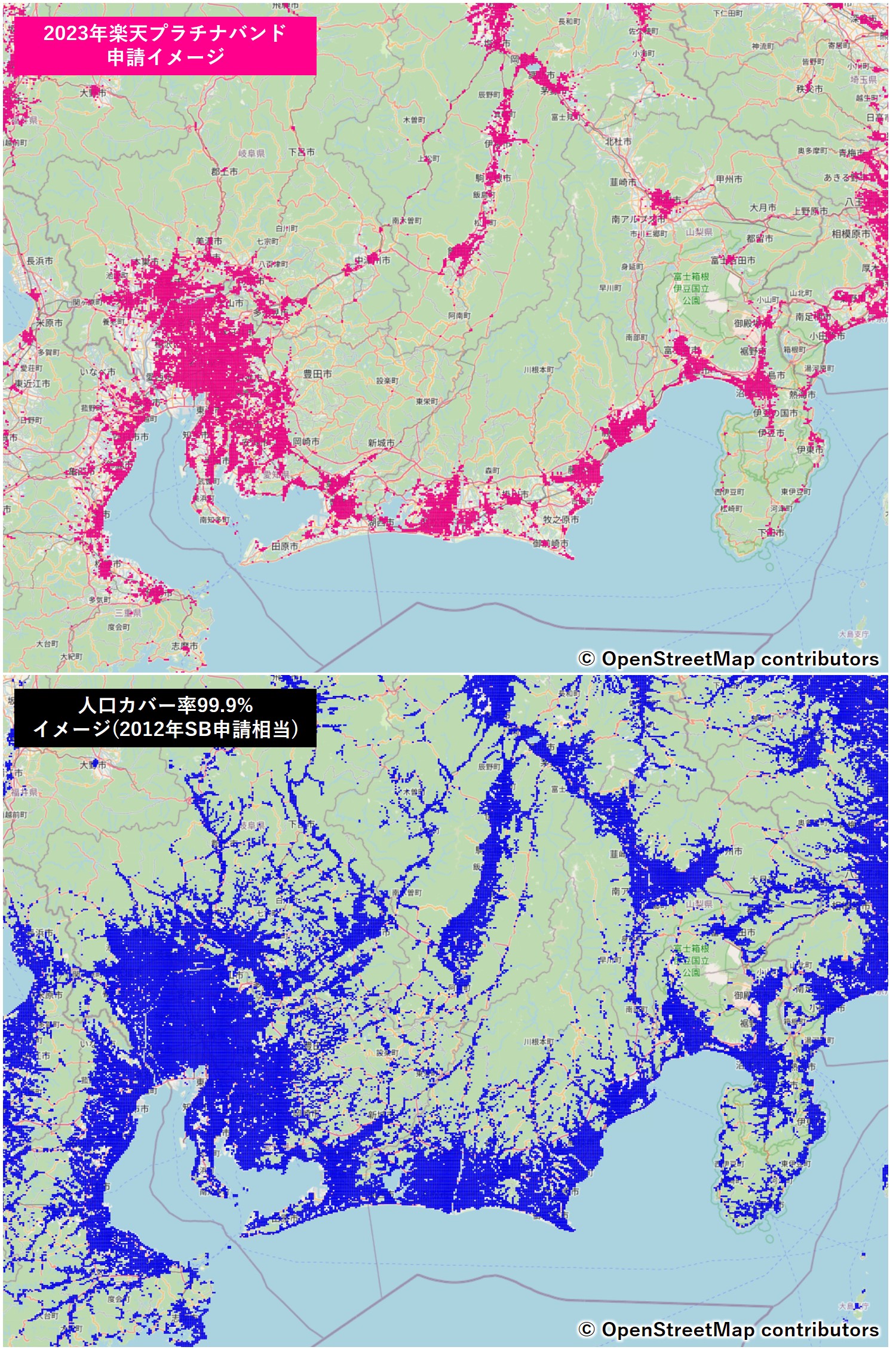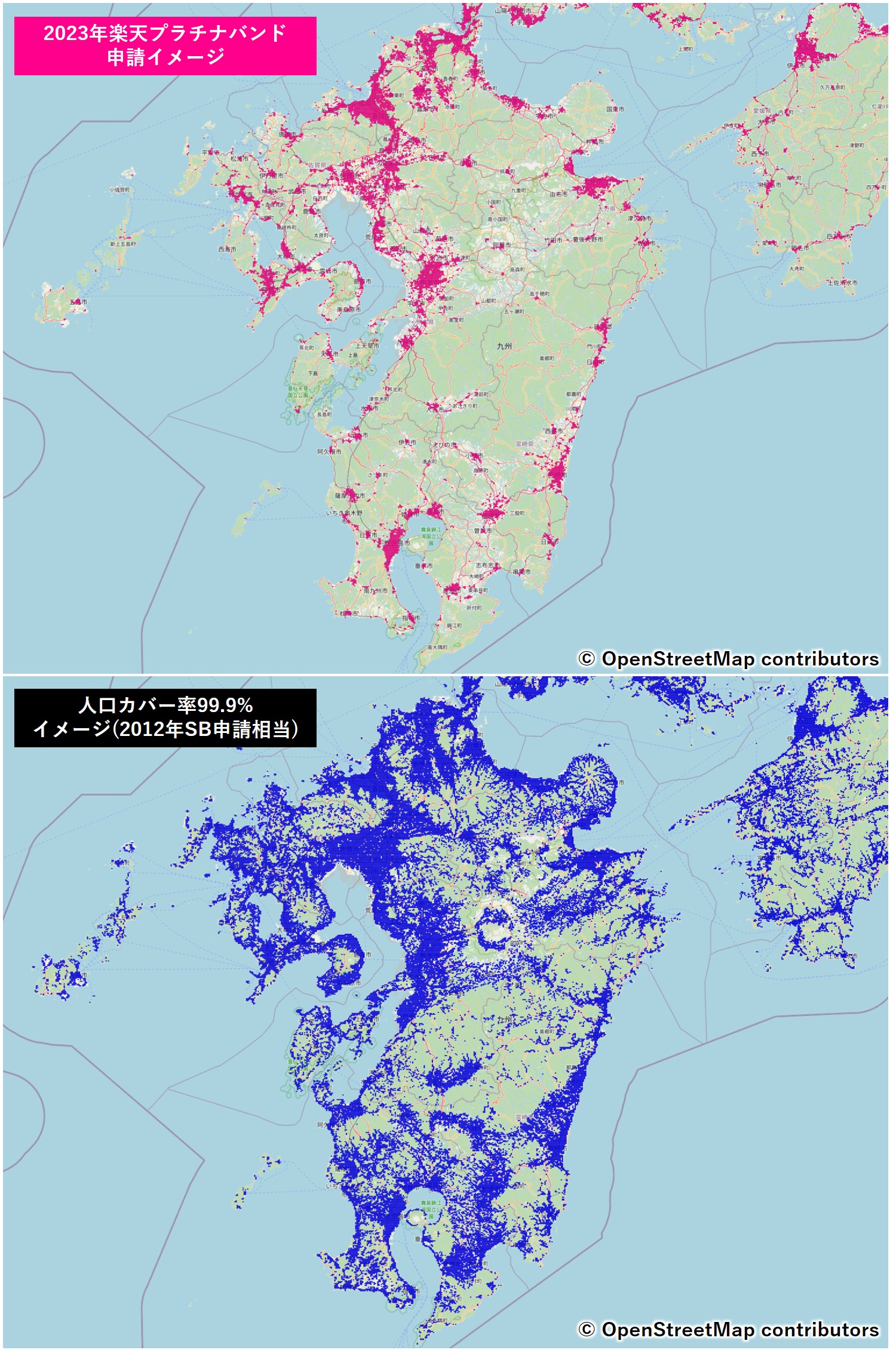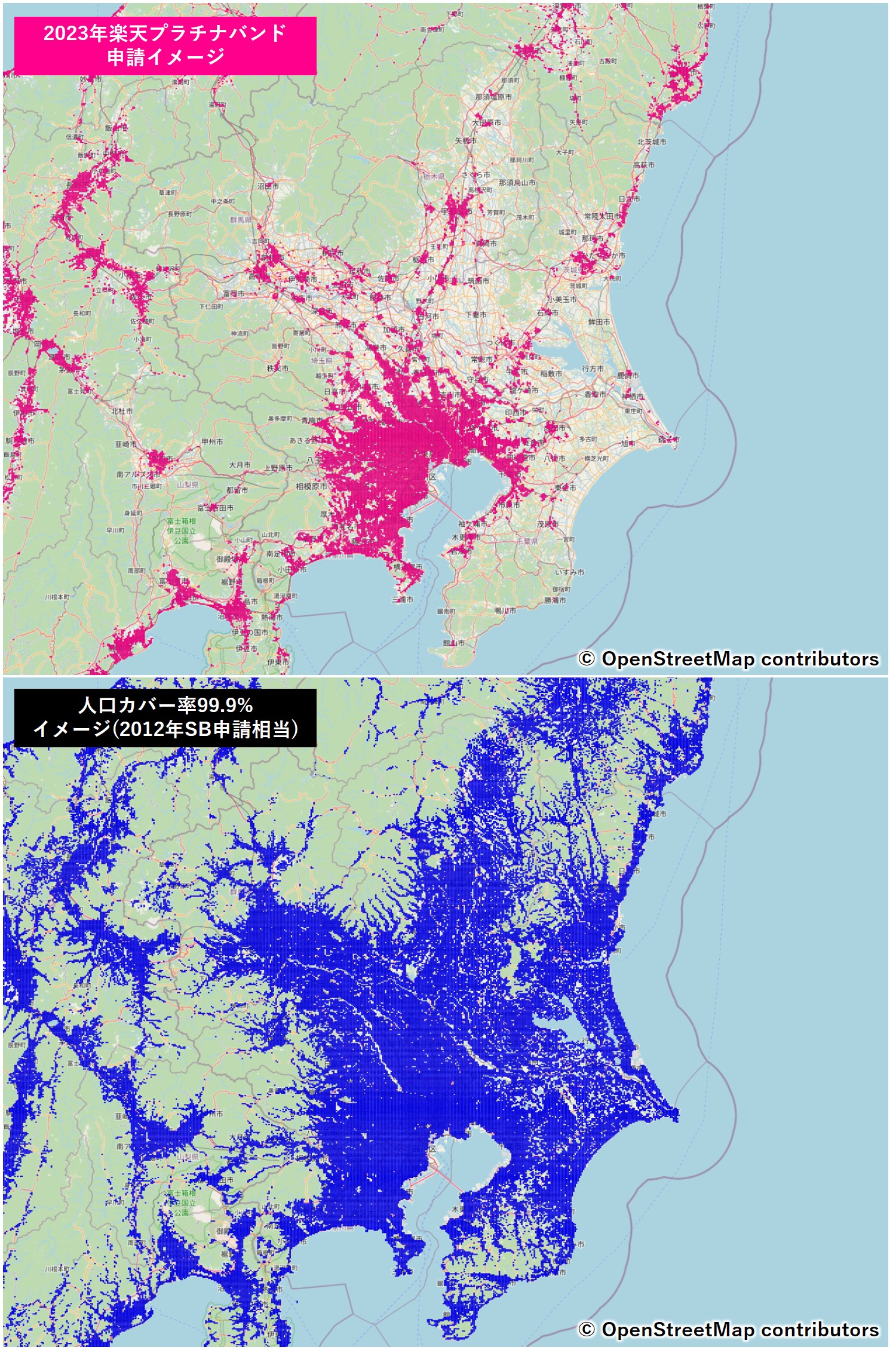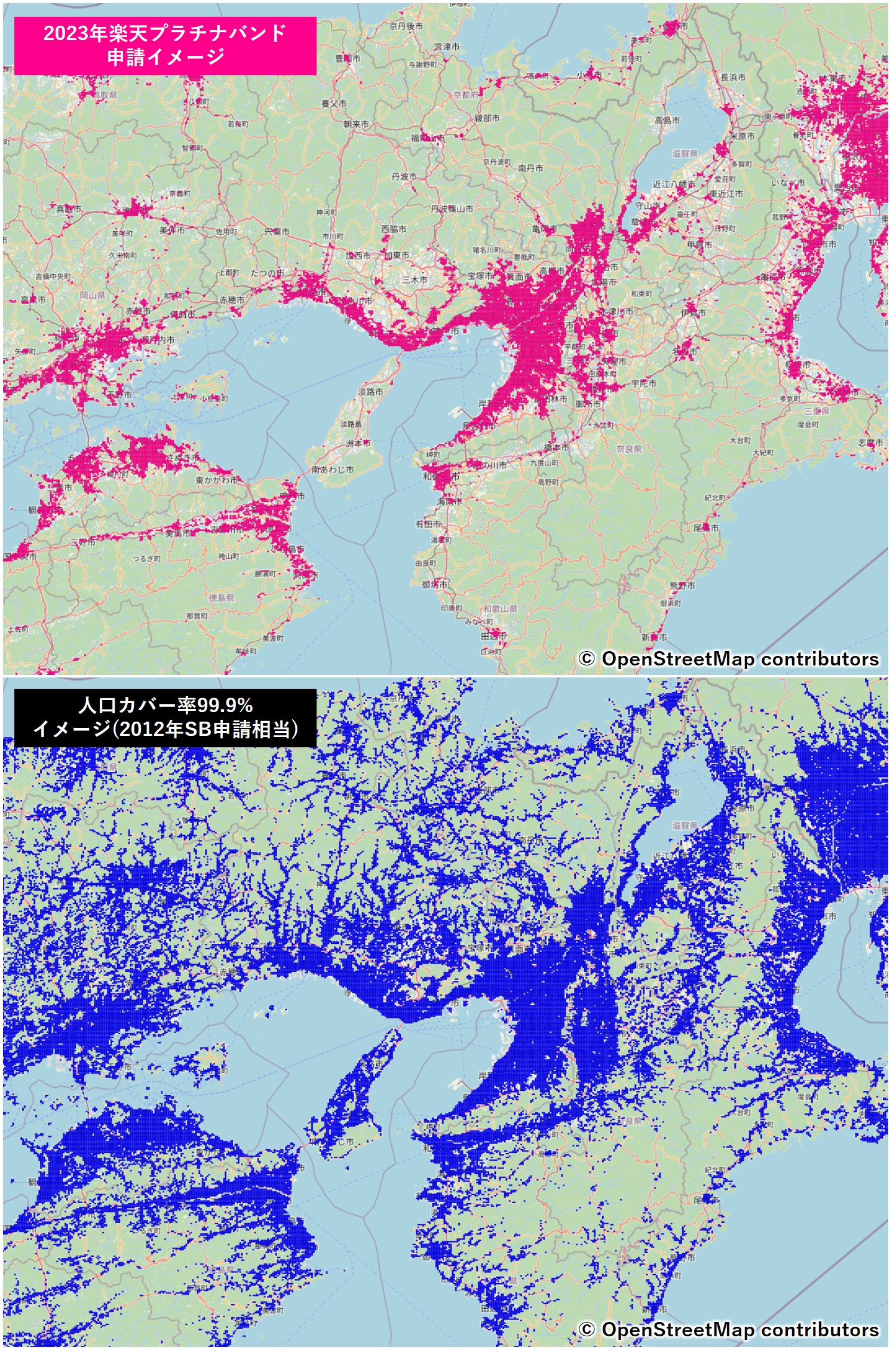 →約20,000k㎡ - 人口カバー率99.9%(2012年SBの計画相当)