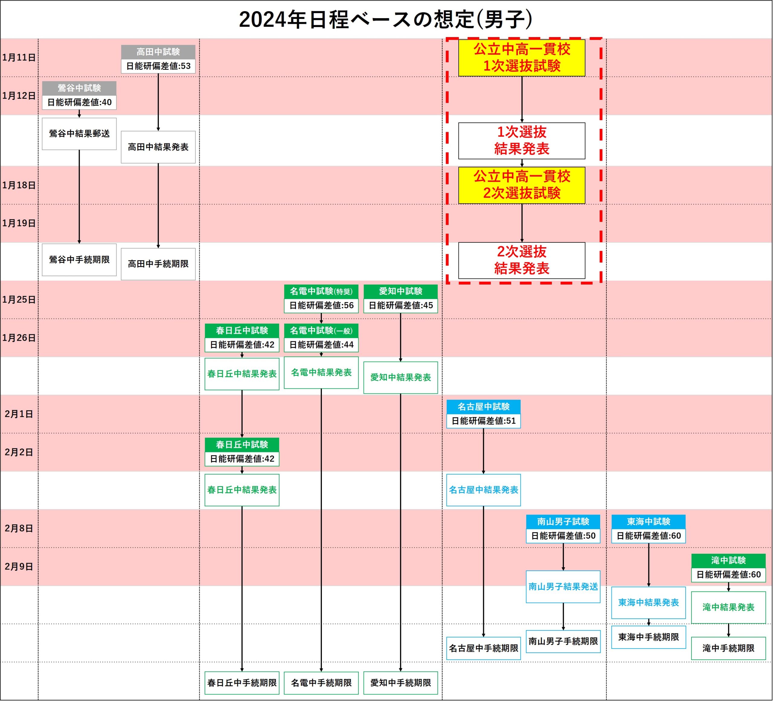 私立中高一貫校との併願を考えると、それぞれ以下のような日程が想定されます。