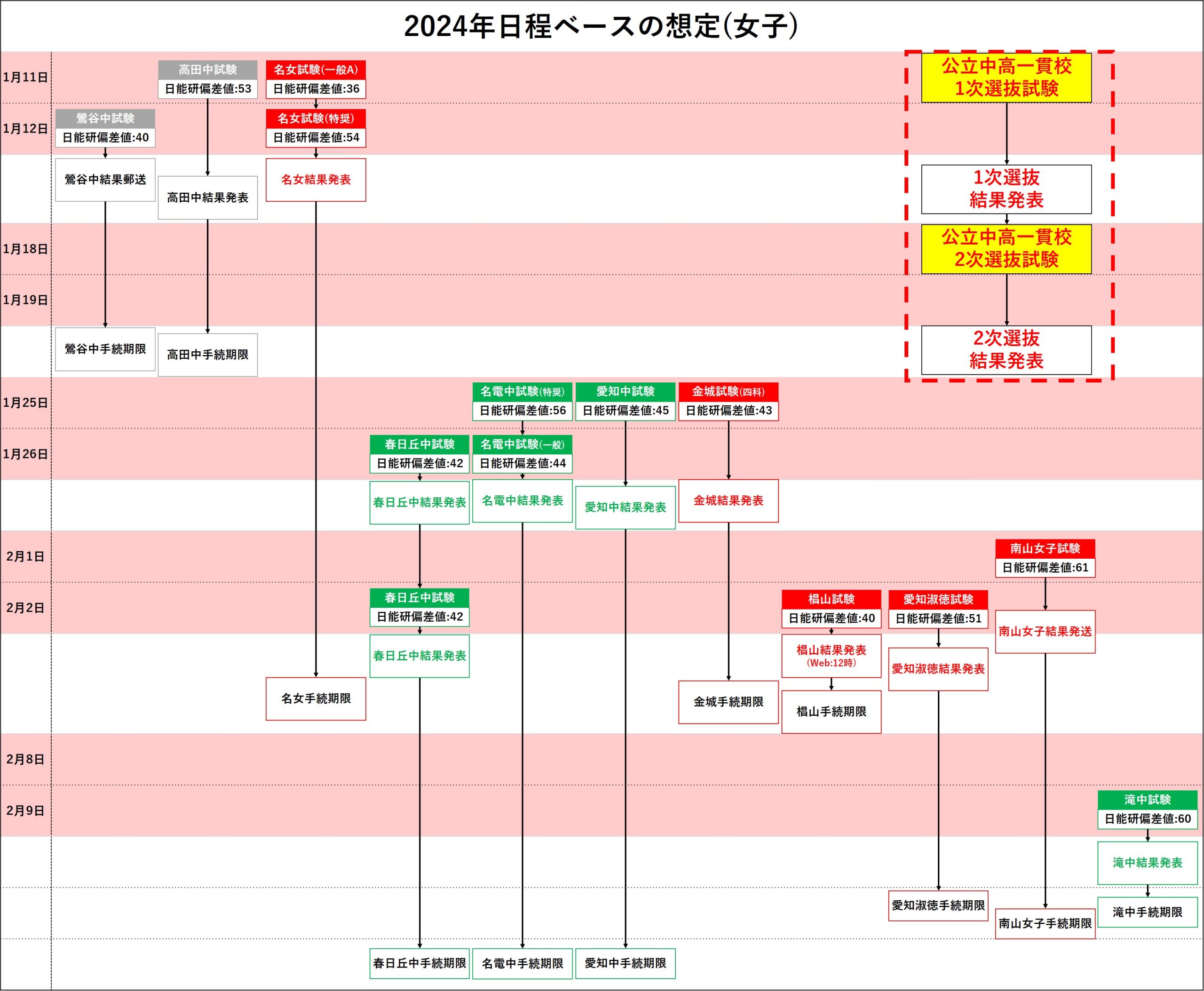 県外早期受験校および名古屋女子の試験日程が被る