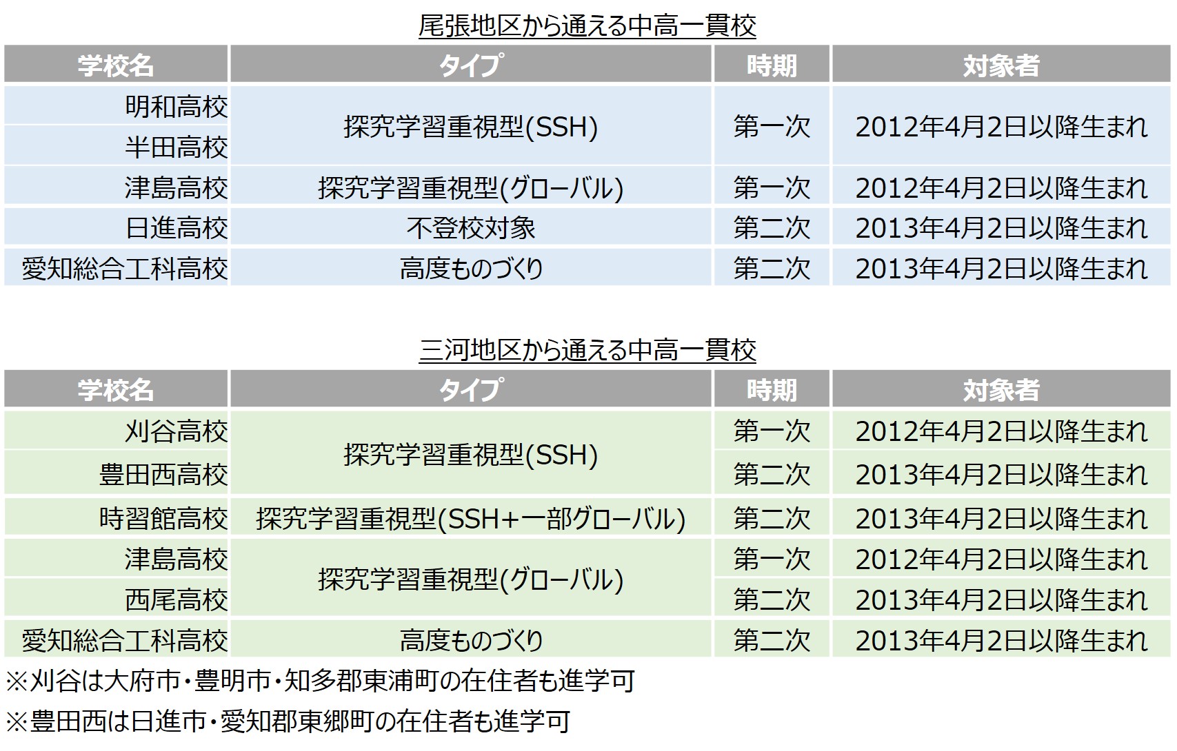 なお、開校時期だけだと分かりづらいですが、それぞれ対象になるのは