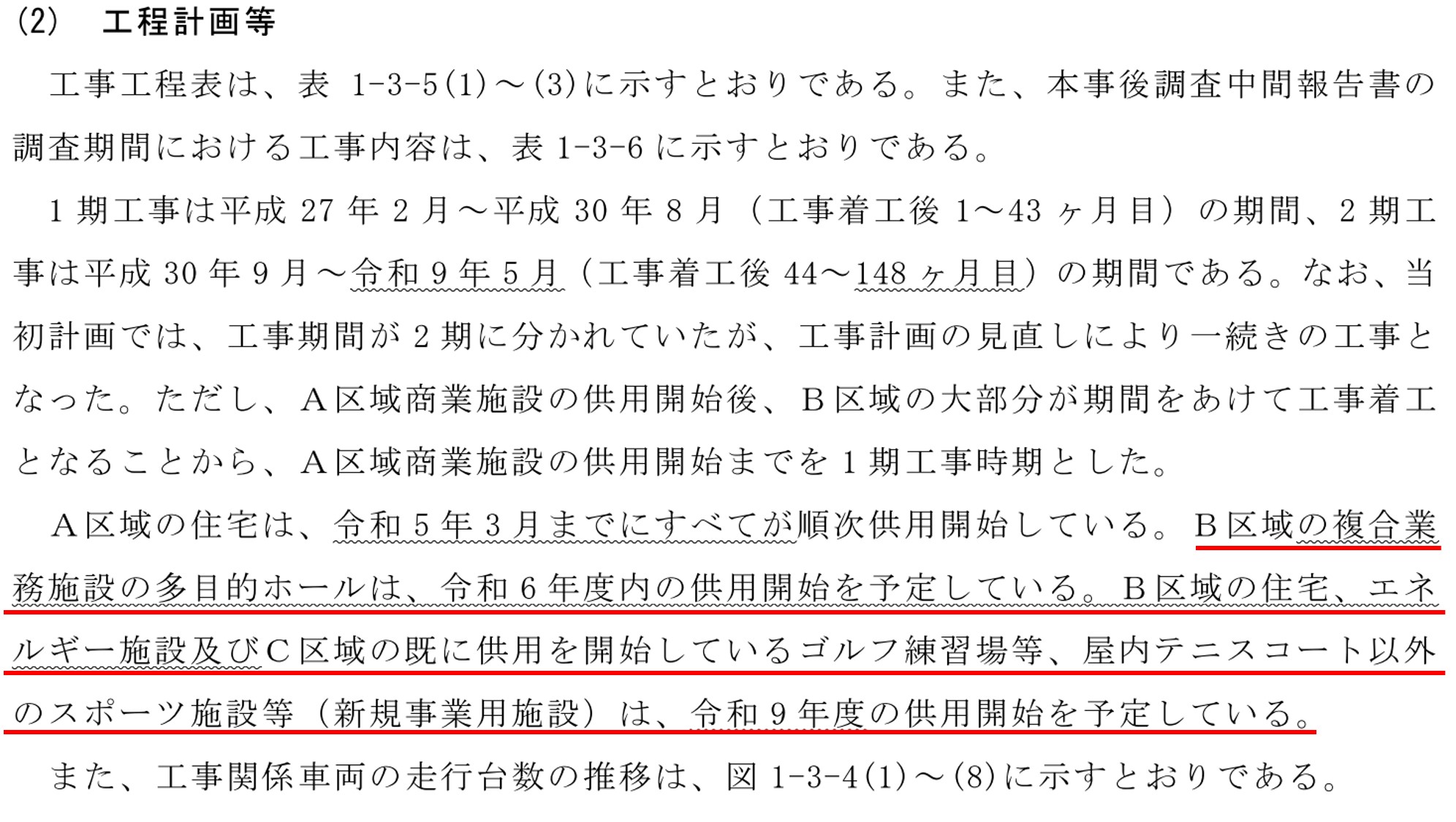 - 外部環境の変化でB区域・C区域の開業予定が未定に